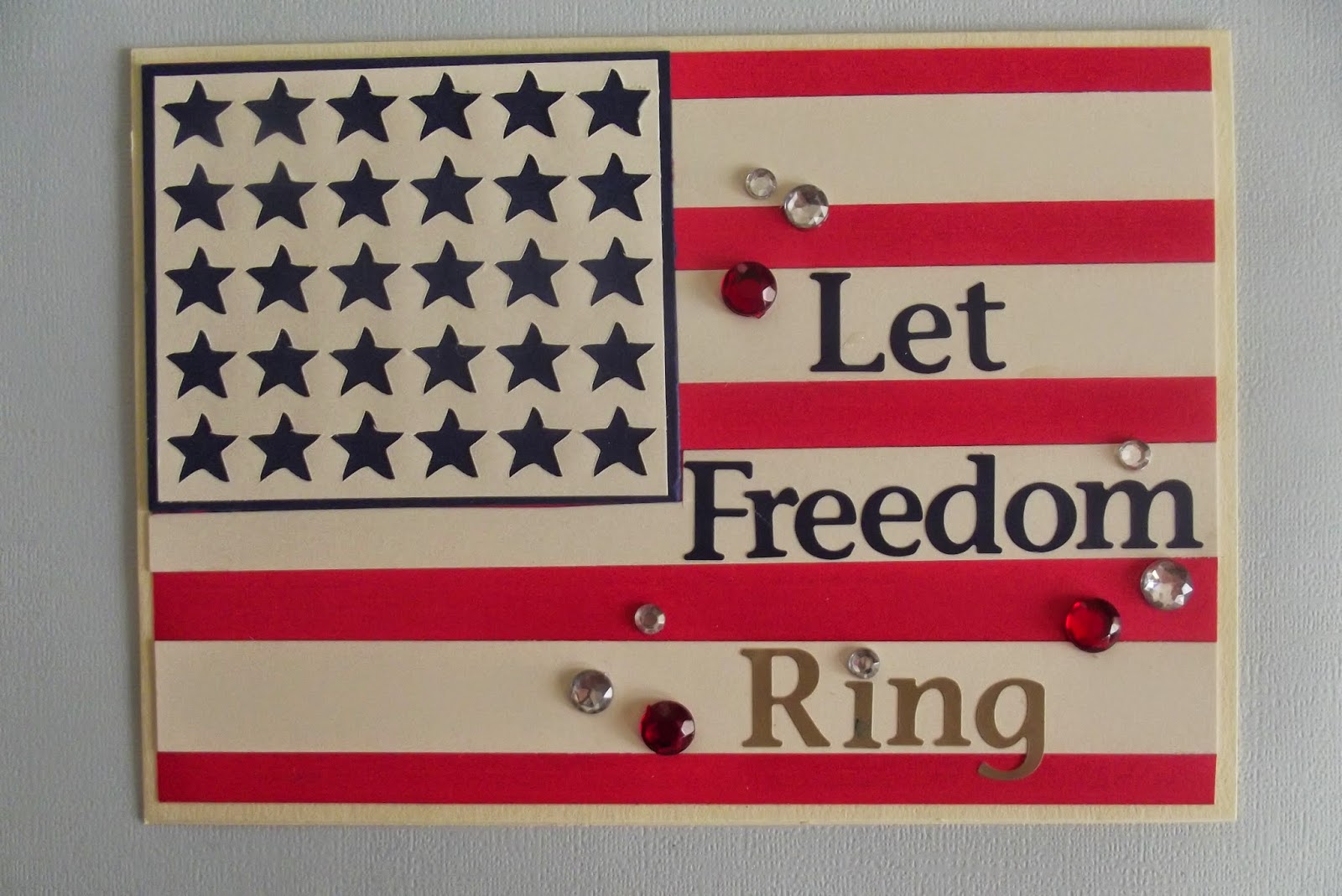 Remember the stars I used earlier this month on the American Flag Fan I made? I cut the sheet up and used it to create cards! None of the paper went to waste!